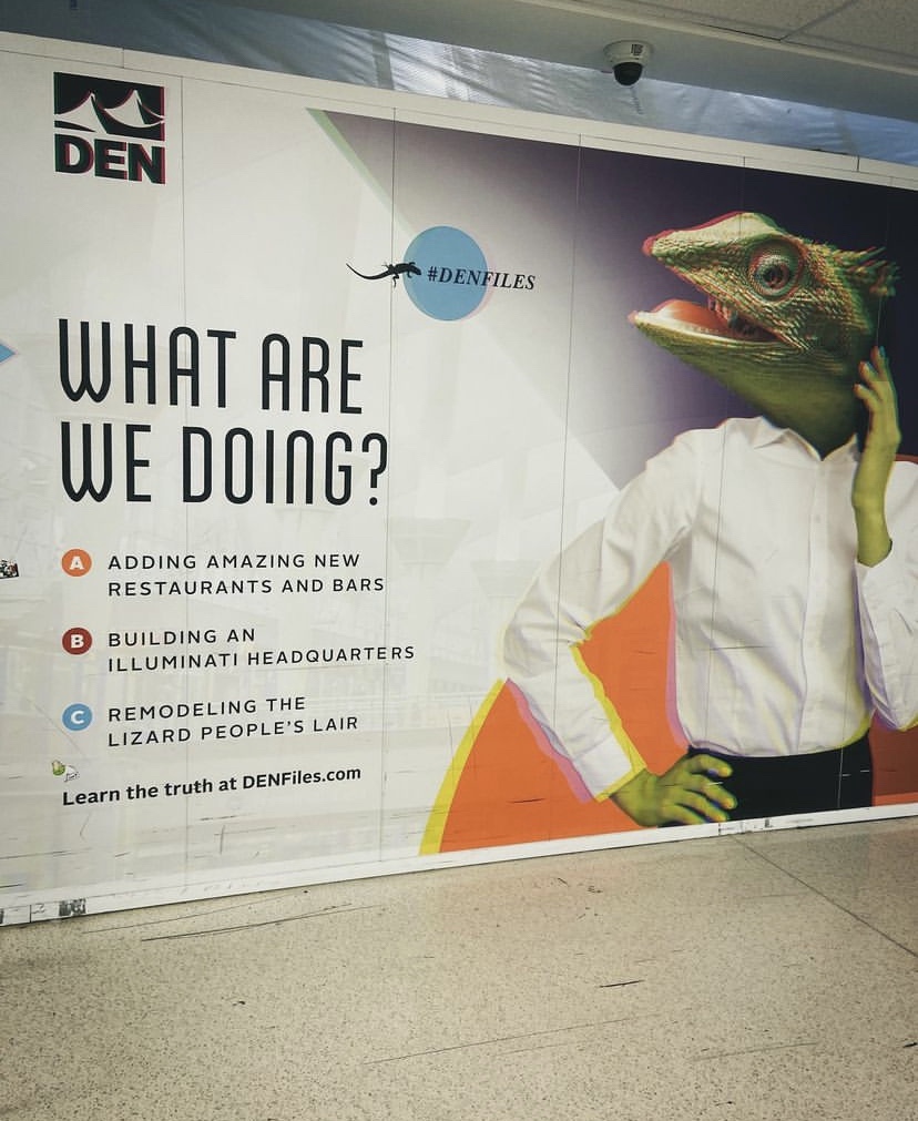 When you get to Denver, the creepiness starts right away. The Denver Airport surrounded by several conspiracy theories, which the airport seems to be leaning into with their construction site! Conspiracy theories include: